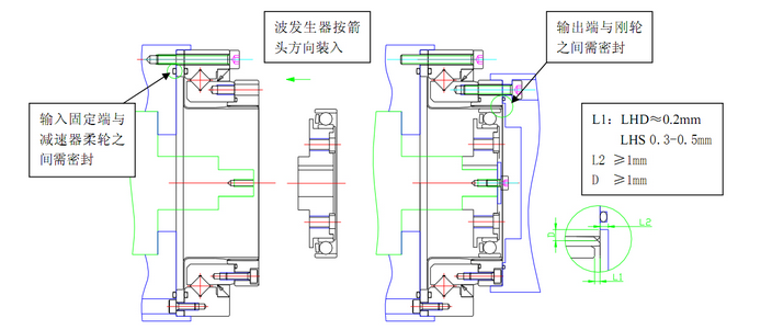 谐波传动减速器刚轮与输入端安装平面之间需采用静态密封,以保证减速器使用过程中油脂不会泄露,避免减速器在少油或无油工作时损坏。